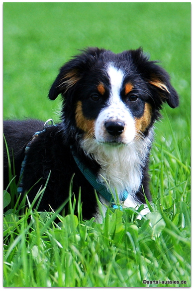 Durch Mama Amy´s Apportierleidenschaft, hat sie es in kürzester Zeit verstanden, den Ball bis an die Füße zu bringen und zeigt jetzt schon ein starkes Sprungtalent, welches später vielleicht für eine Agilitykarriere genutzt werden könnte.