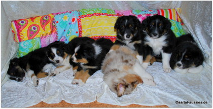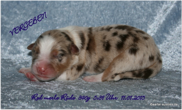 Wunderschöner dunkler red merle Bub mit maskulinem Köpfchen.
