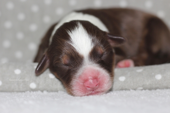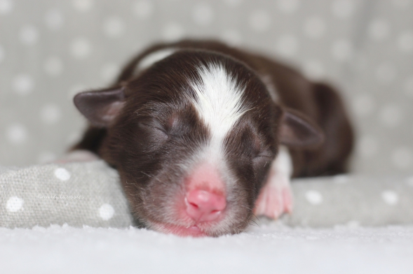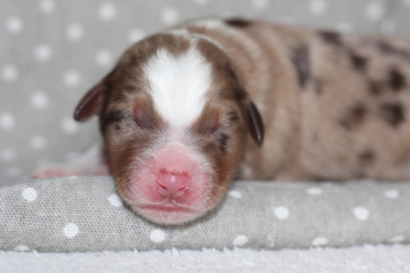 Hübsche red merle Hündin wie aus dem Bilderbuch.