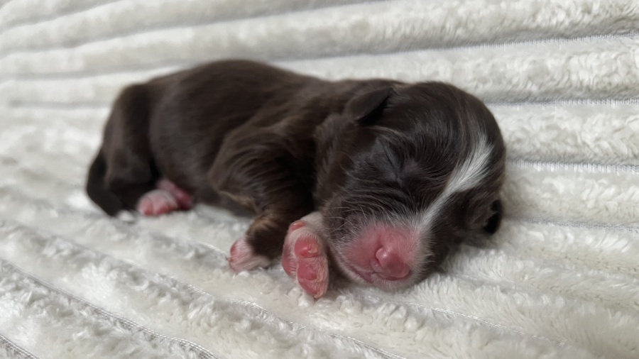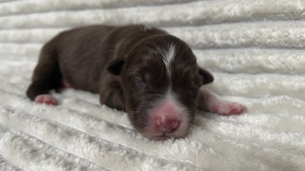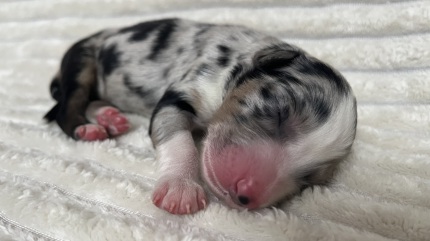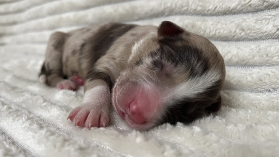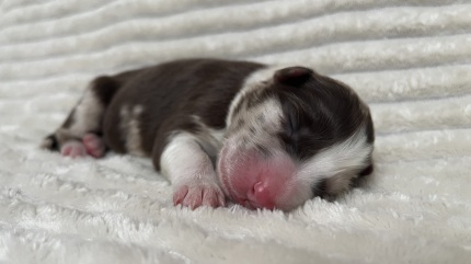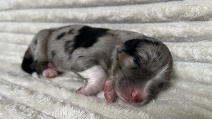 Zauberhafte red merle Hündin mit besonders schöner Sonderlakierung