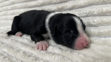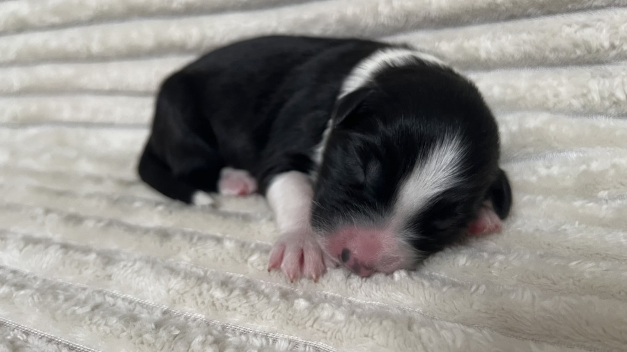 Schöne black tri Hündin mit toller Zeichnung