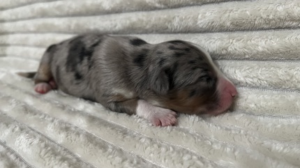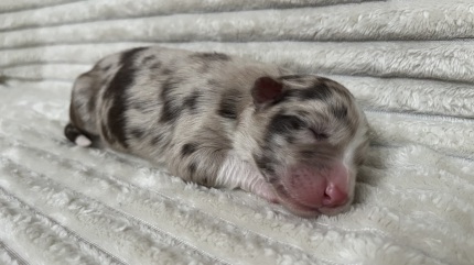 Wunderschöner blue merle Rüde mit sattem Kupfer