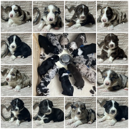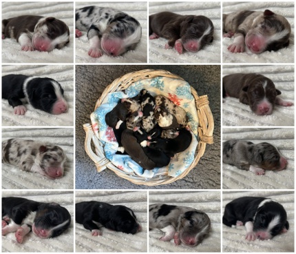 Punkt 8 Uhr kam ein harmonisch gezeichneter red merle Rüde mit 398g dazu und um 8:32 Uhr mit 365g der wunderschöne zweite blue merle Rüde.