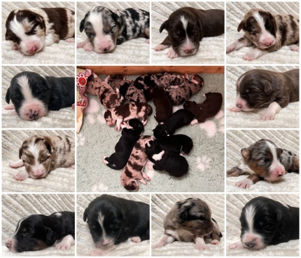 Den Anfang hat eine, um 3:57 Uhr, zauberhaft dunkel gezeichnete red merle Hündin mit 456g gemacht.